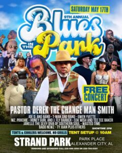 Join us for the 9th Annual Blues In The Park on Saturday, May 17th at Strand Park in Alexander City!