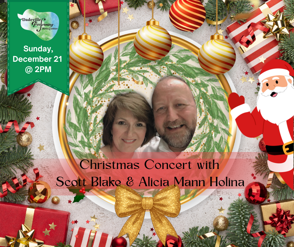 Celebrate the season with local favorites Scott Blake and Alicia Mann Holina as they present a festive program of holiday songs at the Dadeville Performing Arts Center. Enjoy one of the final “Ho-Ho’s” of December in this lively, community-focused event. Donations are welcomed to support DPAC’s community programs.