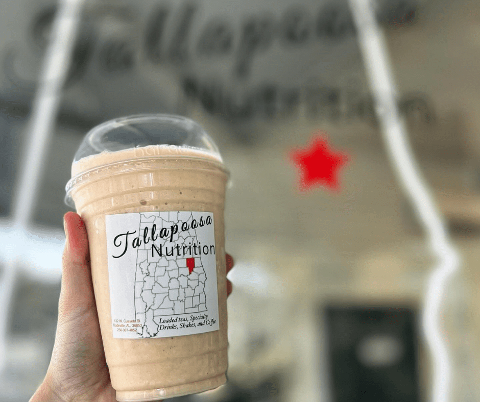 Tallapoosa Nutrition offers a variety of healthy teas and shakes designed to fuel your day. Whether you’re looking for a pre or post workout boost, or something refreshing to help with energy, digestion, and focus, their menu has something for everyone.
